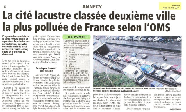 Plus bas à télécharger deux articles parus dans l’Essor Savoyard à propos des résultats des polluants aux particules fines à Annecy.