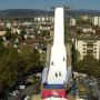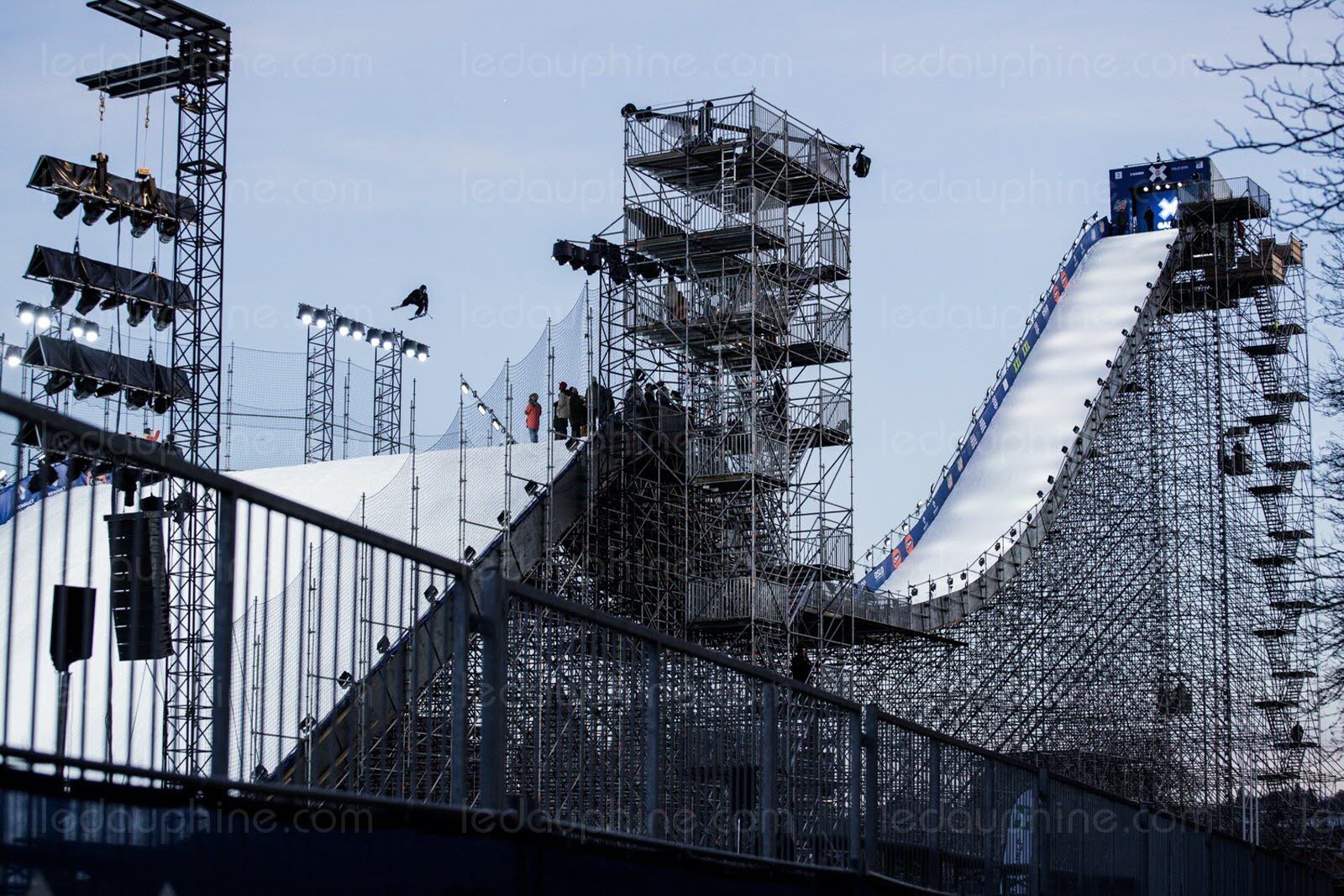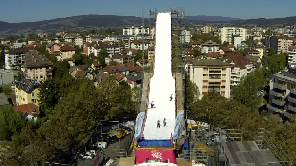 Cet événement, d’abord refusé par l’agglomération d’Annecy lorsqu’il a été proposé sur le Pâquier, a finalement été accueilli place des Romains. L’asphalte était certainement un terrain d’atterrissage jugé plus sûr pour supporter ce mastodonte de 600 tonnes sur lequel une poignée de skieurs spécialistes du « half-pipe », du « big air », ou encore du « slopstyle » ont foncé tête baissée dans le mur de l’aberration climatique.